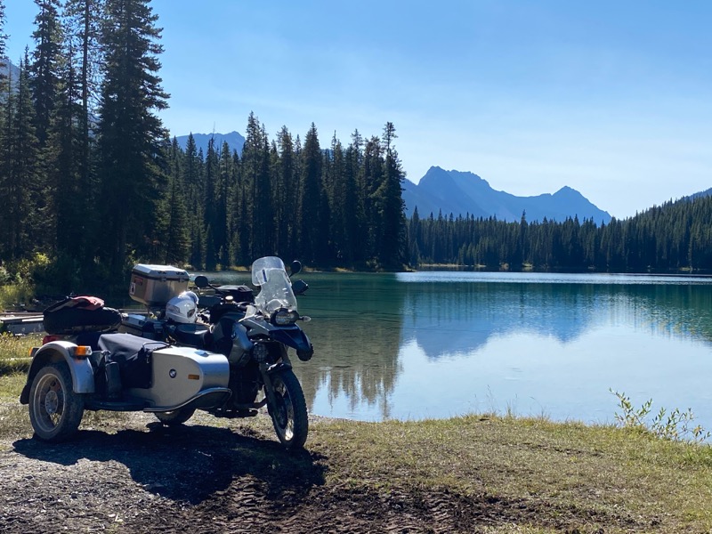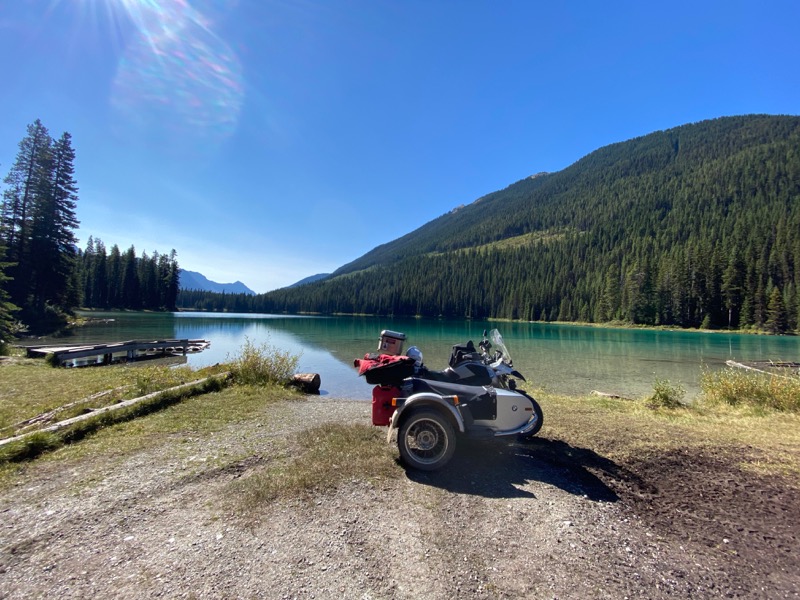 Once on pavement, I can start to make up time, but not before a stop for gas and a check in with Kathy, I have been out of Cell coverage for 48 hours. So west on Highway 1a and then up over highwood. Thinking there is fuel at where the ski hill is, Kananaskis ?? I pass on the fuel at the start. Hmmm I had forgotten that it is 10 k further on. In the mean time I am calculating my range as I know my route is going to use most of my tank up. My range with this rig has me doing this more often than not. Kind of why I have the new GSA as a tug for the new one that is in the works. Any way I get side tracked.