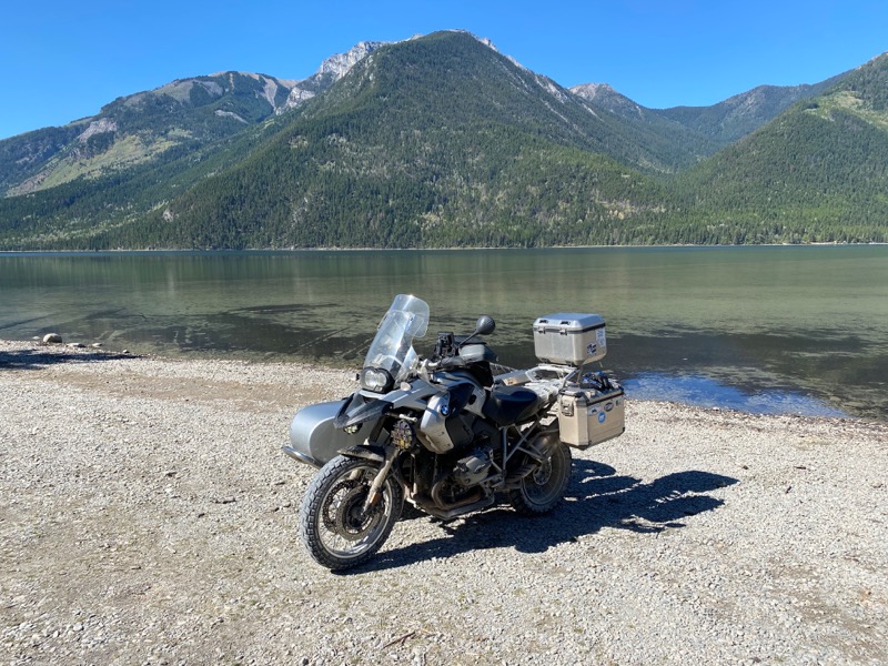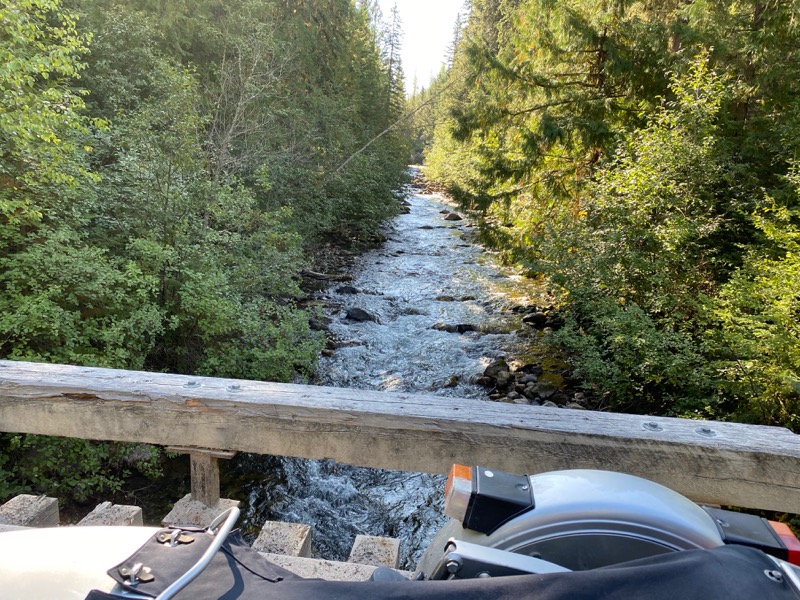 As I bounce along the 30 k or so from Whiteswam lake to Canal Flats I start to calculate how much time is left in my day. Oh road to the left where dose it go, quick check of the map and it leads to Premier Lake. Ok I'm in. Gets nasty for a bit but I persist. Turns out I'm on the old bit and I should have turned sooner. Still it takes me where I want. Of course now I am in Southern BC I have to stop and strip off some layers. It's getting warm. I stop in Kimberly for a late Lunch, early supper. Now how do I get to Midway from Kimberly and avoid Highway 3. Hmmm, Gray Creek to Crawford bay, Stay at Toad Rock, Up to Nakusp, Needles, Edgewood, Take the Granby down to Grandforks, hey I might be there before Beer O'clock . sorry not may pictures, just too busy moving